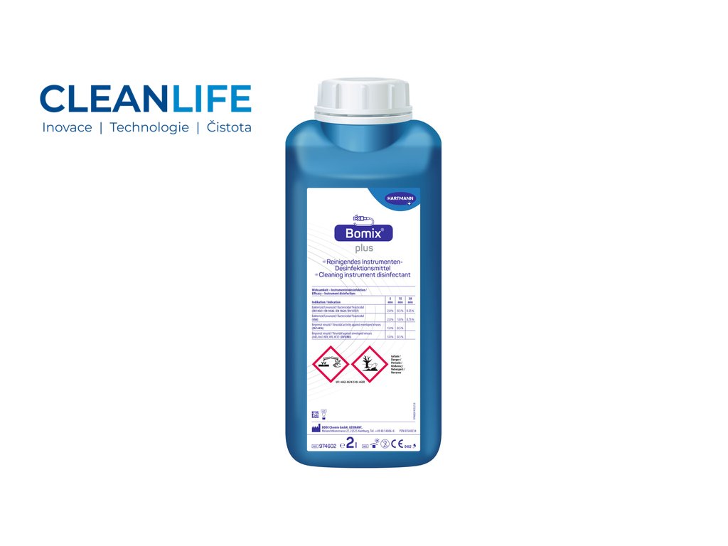 Bomix® plus je profesionální tekutý přípravek určený pro manuální čištění a dezinfekci chirurgických nástrojů a citlivých zdravotnických prostředků, včetně instrumentária s vysokou bílkovinnou kontaminací. Díky výborné materiálové snášenlivosti se může Bomix plus používat také na citlivé nástroje, jako jsou flexibilní endoskopy a nástroje obsahující silikon a latex.