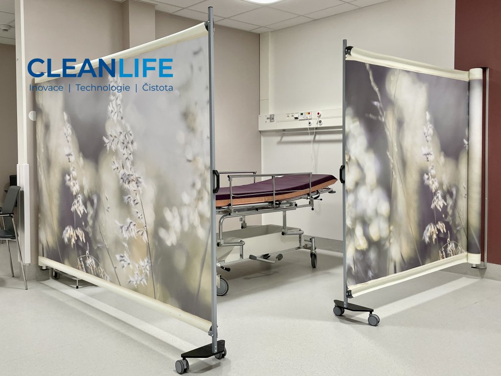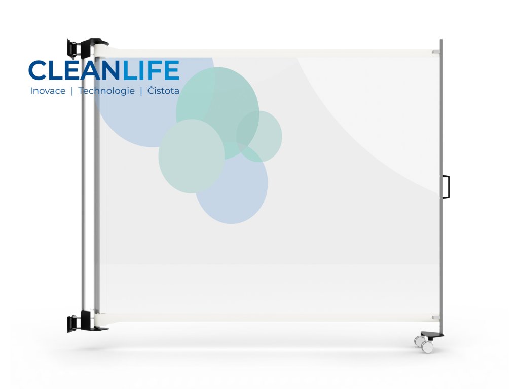 AIR má odlehčený rám s lehkou úchytkou a kompaktním základním boxem, díky čemuž je velmi nenáročná na prostor a snadno se skládá zpět, když není potřeba. Povrch zástěny je z PVC, které lze snadno otírat a dezinfikovat běžnými prostředky, což zvyšuje hygienickou bezpečnost ve zdravotnických a sociálních zařízeních, ordinacích nebo čekárnách.