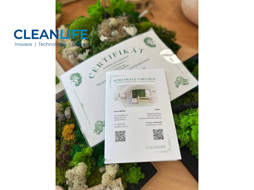 Kurz je veden tak, aby účastníky naučil nejen techniku, ale i inspirativní způsoby, jak práci s mechem integrovat do aktivizace klientů – např. formou tvořivých dílen, skupinových aktivit či relaxačních chvilek. Po absolvování kurzu obdrží účastníci certifikát, který potvrzuje nové dovednosti a způsobilost pro práci s tímto materiálem.