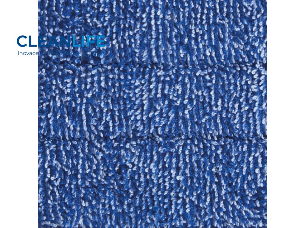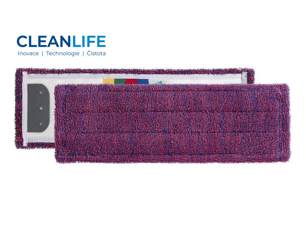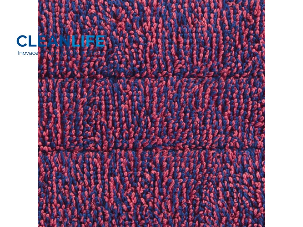 Mop je určen pro použití s plochými ždímači systému Wet System, díky čemuž jej snadno upevníte a sundáte bez zbytečného kontaktu s nečistotami. Je odolný vůči pračce (doporučená teplota praní 60 °C, max. 90 °C) a po vyprání si udržuje tvar i savost. Díky nízkému tření a ergonomickému designu šetří fyzickou námahu při úklidu i čas. Mop je dostupný ve dvou barevných variantách — vínová a modrá, díky čemuž lze snadno realizovat barevné hygienické kódování podle zón úklidu.