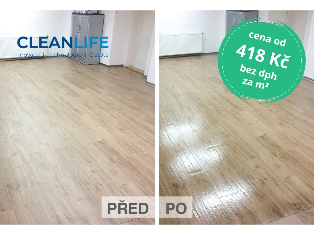 Pokládáte novou podlahu (PVC, vinyl, linoleum, keramická dlažba nebo kamenná podlaha) a nechcete ji za 1 rok nákladně čistit, náročně dezinfikovat či opravovat mechanické poškození? Potřebujete hygienicky bezpečný povrch? Spolehněte se na nejmodernější technologii: permanentní 2-komponentní polyuretanový nátěr s vysokou mechanickou a chemickou odolností a dlouhou životností. Aplikace probíhá neprodleně po pokládce, ale lze ji také realizovat za provozu, dokud není podlaha značně znečištěna. Silně zatěžované podlahy budou stále krásné díky CLEANLIFE nátěru. Ochranná vrstva zajistí jednodušší údržbu, nižší náklady a menší spotřebu dezinfekce s vyšší účinností.