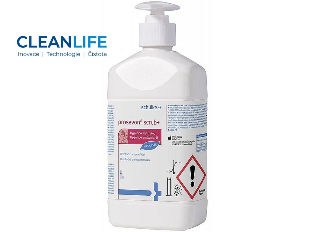 Prosavon® Scrub+ je vysoce kvalitní dezinfekční mycí prostředek určený pro hygienické mytí rukou a dekolonizaci pokožky celého těla včetně vlasů.