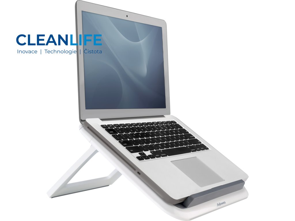 Fellowes I-Spire Quick Lift stojan na notebook je navržen pro zajištění optimální ergonomie při práci s notebookem. Podporuje notebooky až do velikosti 17 palců a nabízí 7 nastavitelných úhlů, což umožňuje přizpůsobit výšku obrazovky pro pohodlné a zdravé držení těla.