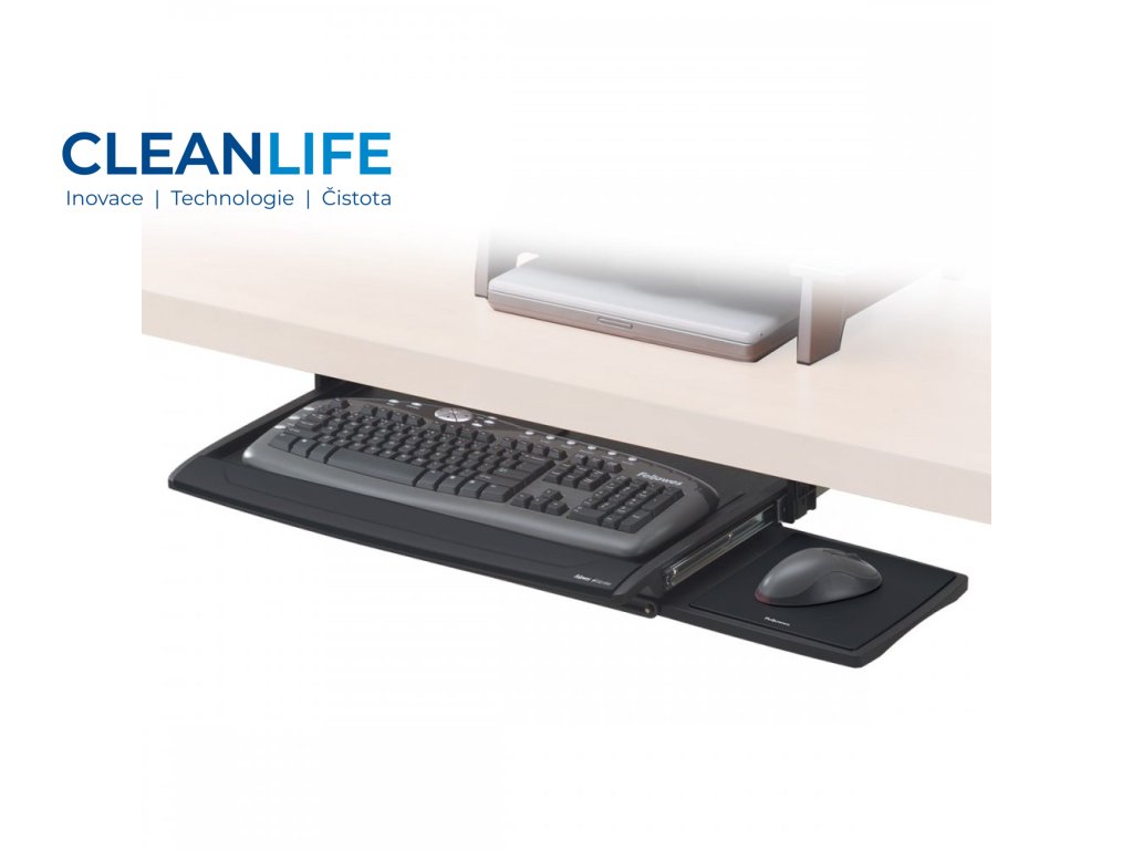 Tato zásuvka nabízí tři úrovně nastavení výšky (44, 54 nebo 64 mm), takže si ji můžete přizpůsobit přesně podle své výšky pracovního stolu a výšky sedu. Na obě strany je možné přidat podložku pod myš (vlevo či vpravo), což zvyšuje flexibilitu uspořádání pracovního prostoru. Součástí dodávky je pěnová opěrka před klávesnici s antibakteriálním povlakem MICROBAN®, která poskytuje pohodlnou oporu pro zápěstí při psaní. Vestavěná zarážka zabraňuje pohybu klávesnice během používání.